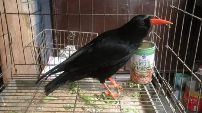 红嘴山鸦(学名为Pyrrhocoraxpyrrhocorax)又名红嘴鸦、山乌、红嘴乌鸦,雀形目鸦科鸦属,常被人训化鸟类之一,分布于中国内蒙古、东北、华北、华中、西北和西南等地区