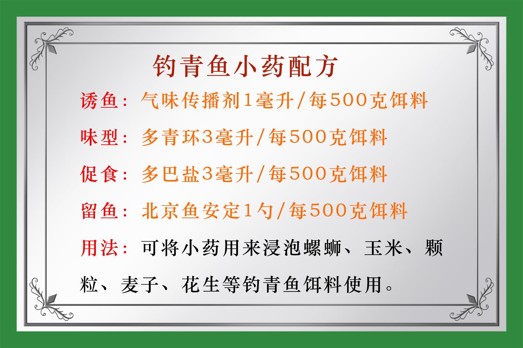能刺激青鱼开口吃饵的钓鱼小药:青鱼喜欢腥鲜味型的饵料,要想让缺氧的青鱼、滑口青鱼、发生应激反应的青鱼、饱食的青鱼开口,最佳的办法就是使用带有腥鲜气味的鱼类饥饿激素——多巴盐,众所周知,多巴盐是淡水鱼类饥饿激素,可以通过分子和鱼的味觉器官接触,刺激鱼的中枢神经,进而产生强烈的饥饿感,可是很少有人知道多巴盐带有腥鲜气味,正是青鱼的最爱,在垂钓鱼的饵料中添加多巴盐,或者用多巴盐来泡螺蛳,钓青鱼时能够强力刺激青鱼开口,效果甚好。