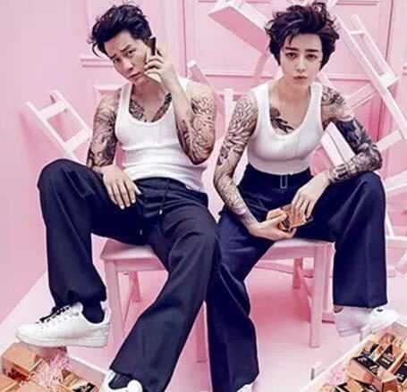 范冰冰选择了纹全身,而且这一身的中性打扮更加证明了“范爷”的称号,但其实这些都是暂时性的纹身,这是范冰冰和李晨为了拍杂志封面而要表达的造型,看着其实有点社会的感觉。