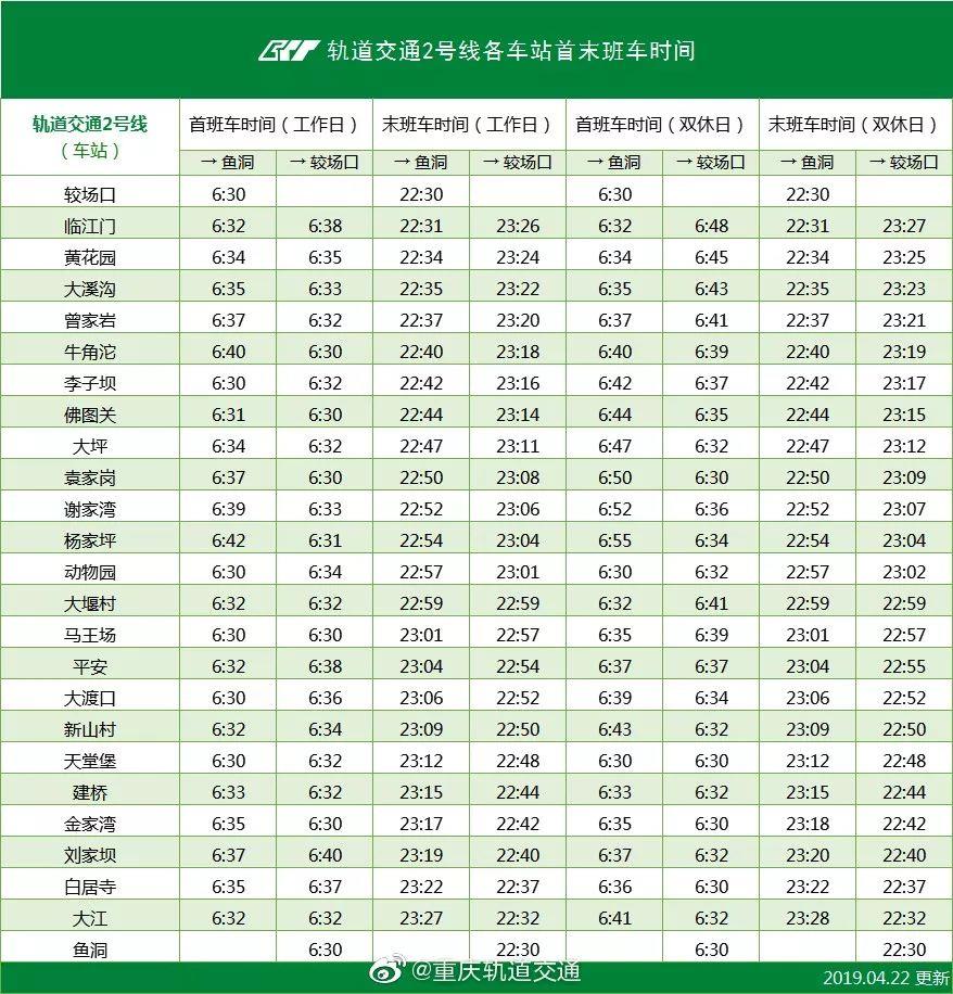 速度收藏!重庆轨道交通最新运营时刻表来了