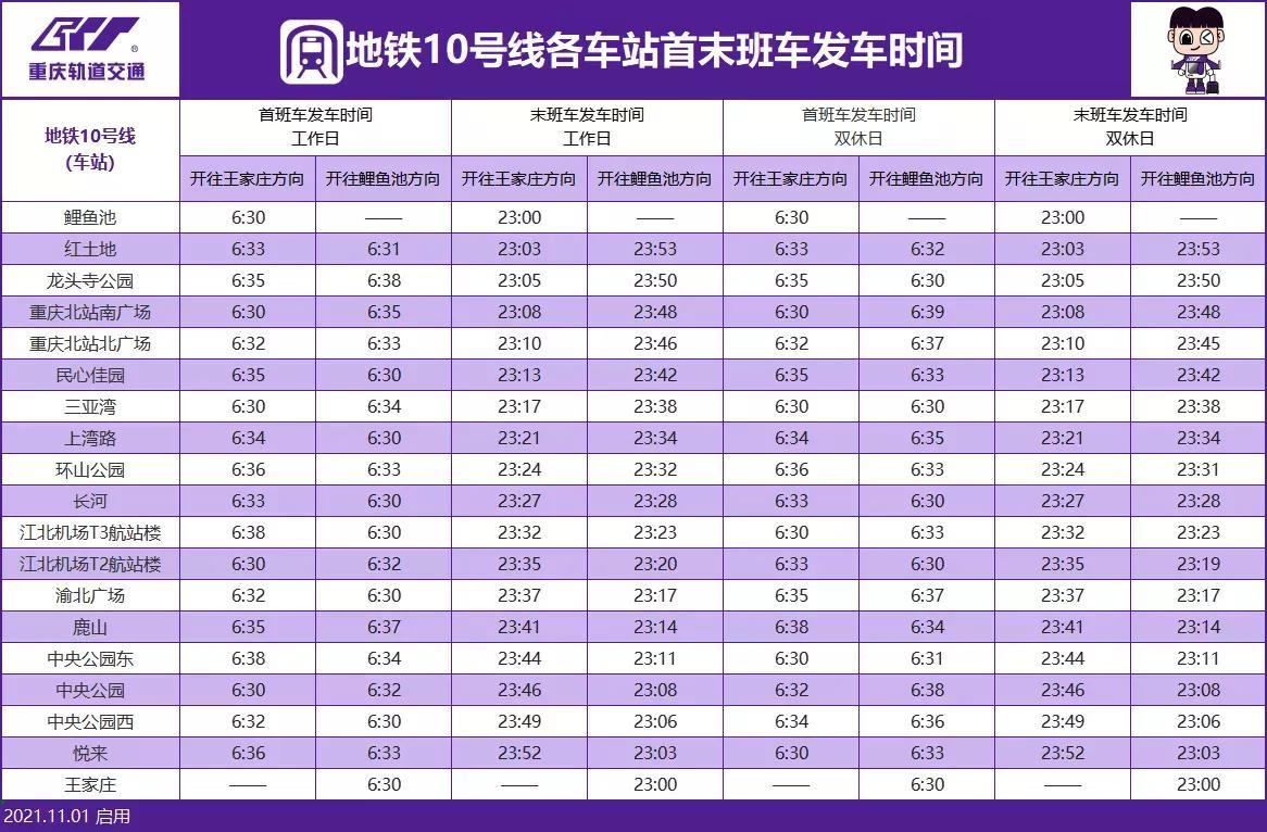 今(元月4日)重庆轨道交通发布了最新运营时间,部分线路末班车发车时间延迟至23:00发车,具体时间看下图