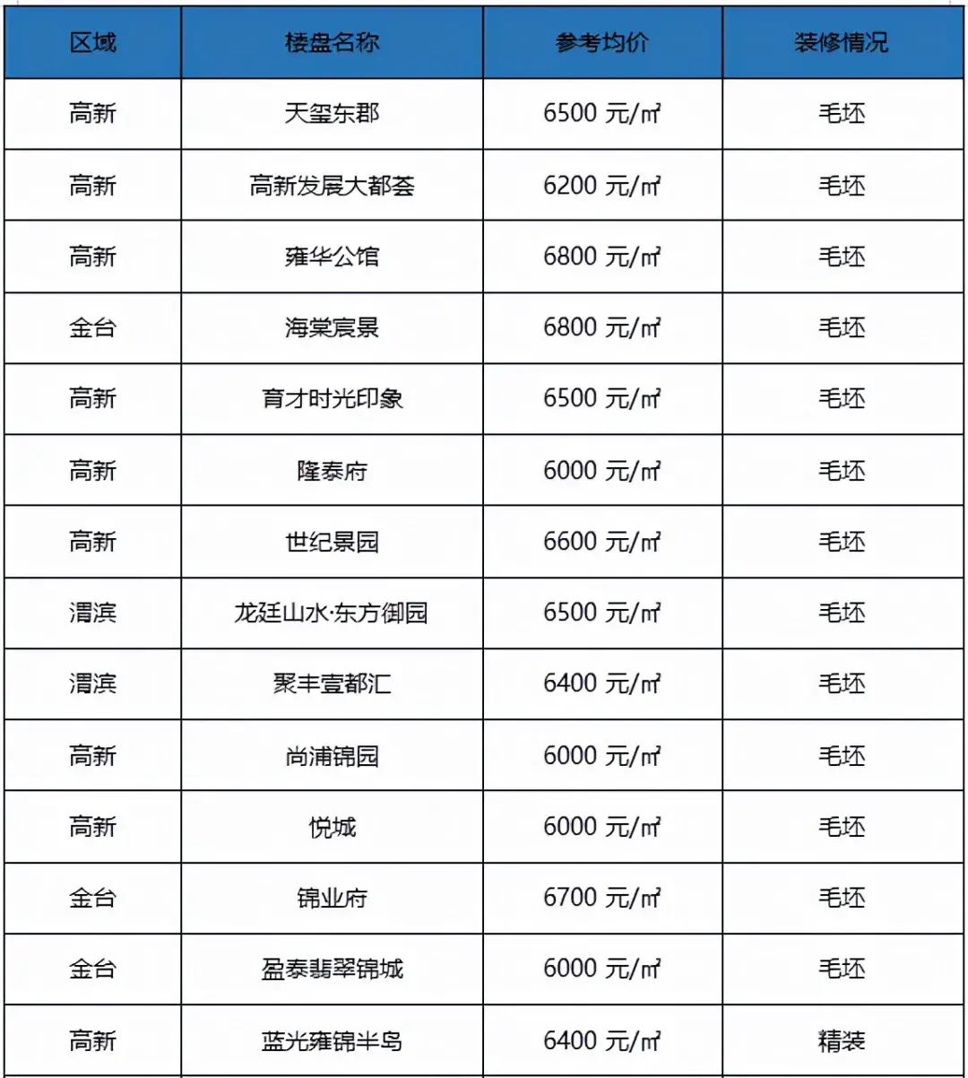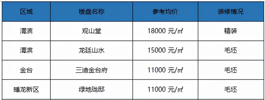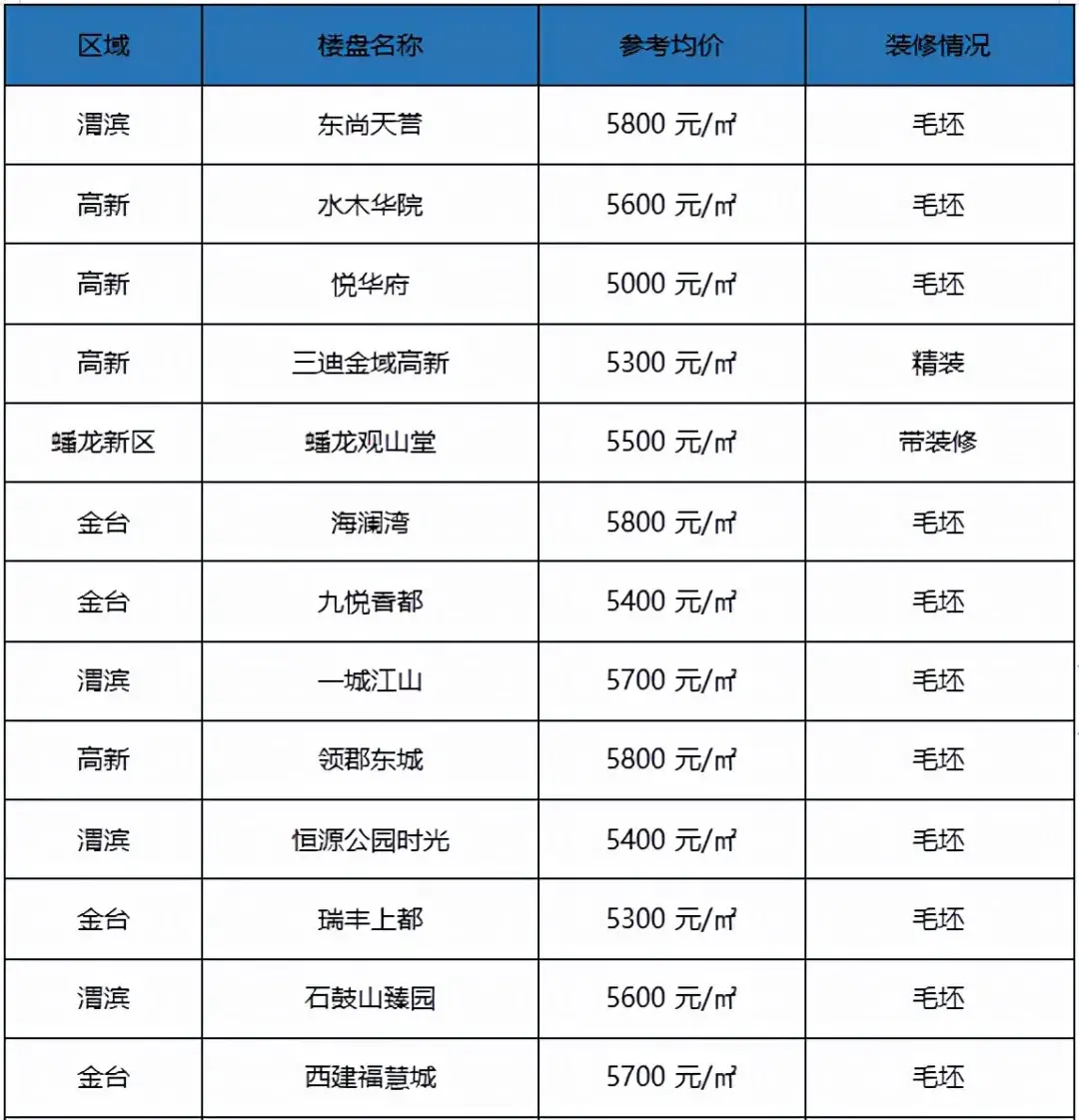对于手头资金预算不足的购房者,5000-6000/㎡的楼盘就更香了,主要集中在渭滨和金台。