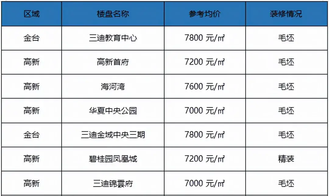 第三梯队:7000-8000/㎡