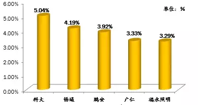 2018年第四季度驾校学员点评占率比前五名