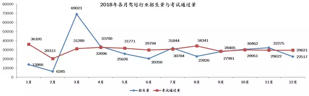2018年全年行业累计招生33.7万人,考试通过量共36.5万人,累计考试通过量与招生量比值为108.3%。