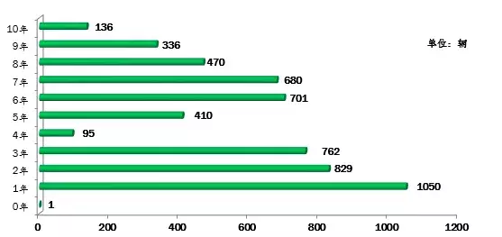 行业教练车车龄统计图(注:根据《机动车强制报废标准规定》第五条规定:小型教练载客汽车使用10年)
