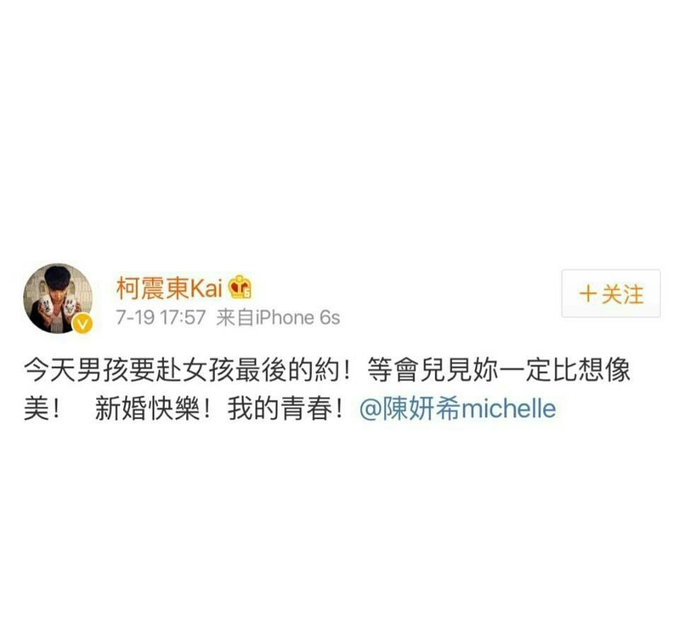 陈妍希大婚柯震东祝福 男孩要赴女孩最后的约