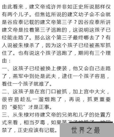 因此,可以推测,建文帝不止有两个儿子,可能还有三子,而这个跑出去的孩子,可能被忠义之士保护起来了。对于朱文圭的一生,可以这么形容:本是太子命,贬做建庶人,半世恍恍过,墙外物不识。棠棣生皇家,骨肉宫里藏,人间梦一场,此恨有谁知?