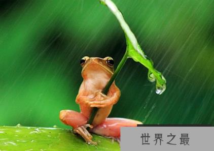 2013年,印度尼西亚的一名摄影师捕捉到一只树蛙在大雨中躲避雨水。它立刻吸引了许多网民的注意,他们说这是他们见过的最可爱的青蛙。