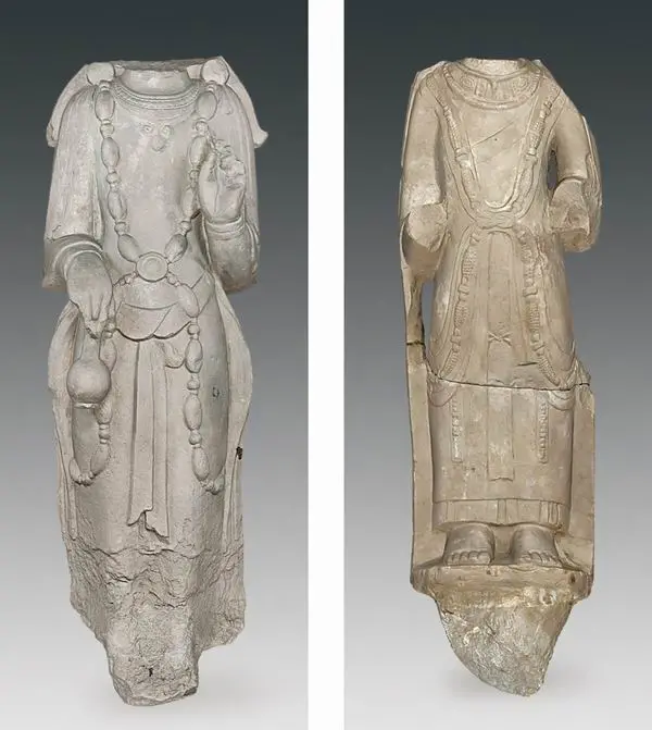 其中北魏时期造像有:背屏式一佛二菩萨像(标本H1 ∶ 043,石灰岩质)。