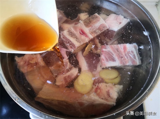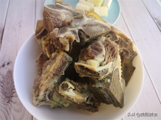 5、捞出的骨头不要用冷水清洗,冷热交替容易使肉变柴,如果上一步浮沫撇得够干净,这一步不用清洗,可以捞出直接下锅炖了;