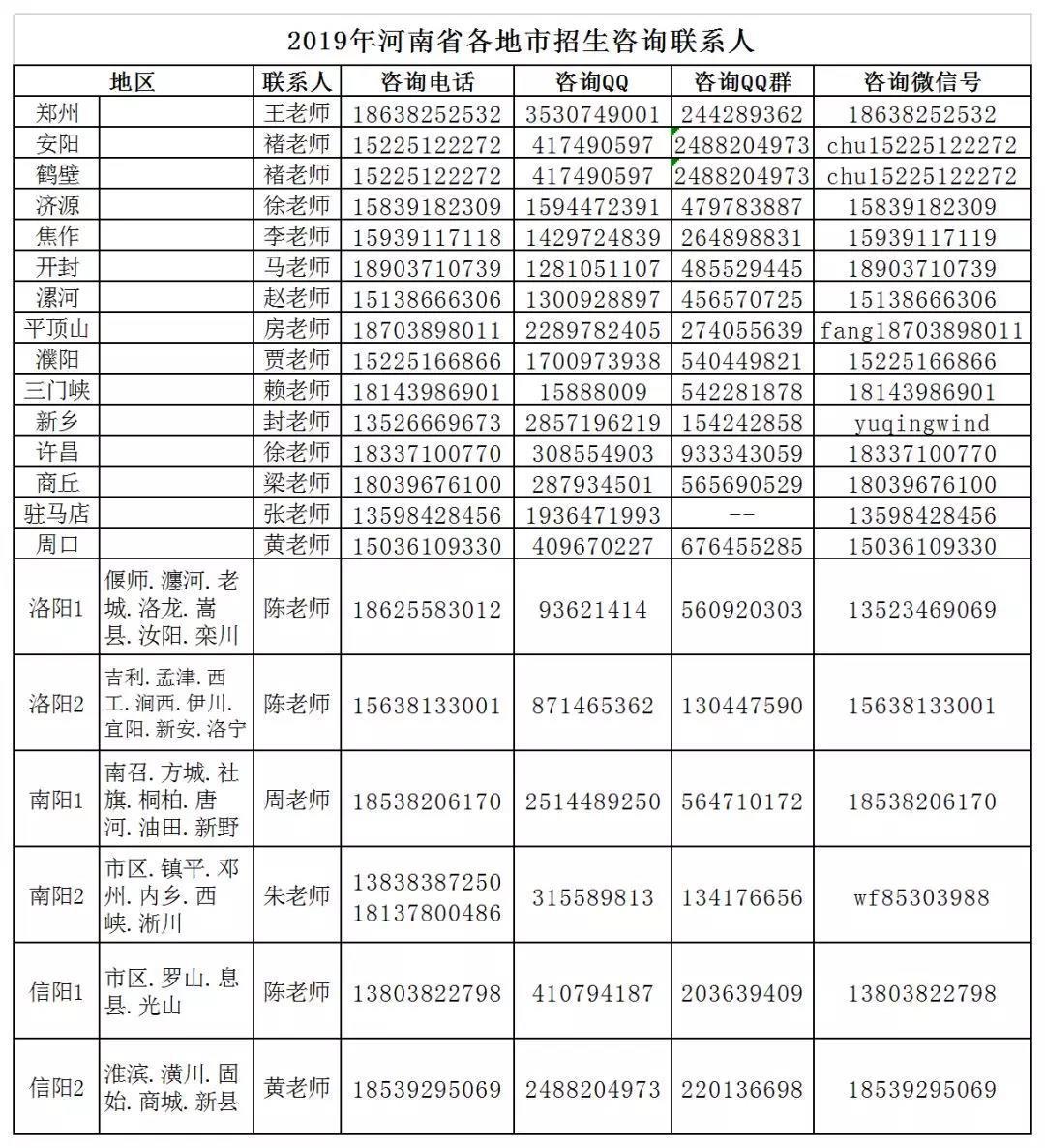 各地招生咨询老师联系方式