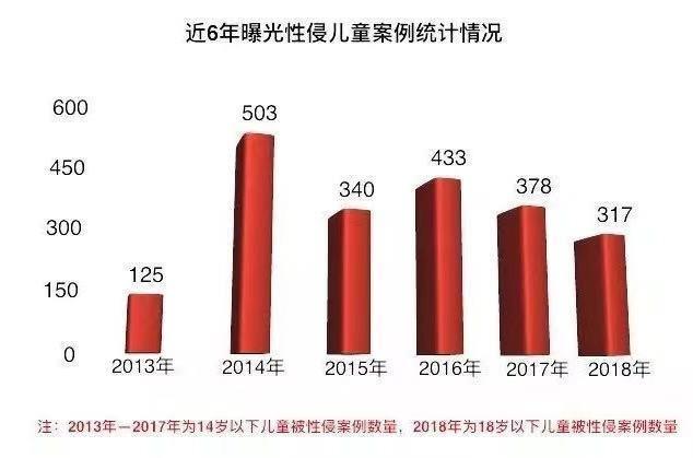 据公益组织“女童保护”不完全统计, 2013-2018六年间,全国各地经媒体曝光的性侵儿童案件高达2096起,仅2018年一年,受害儿童就超过了750人。