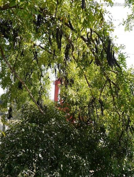 皂荚树,别名皂角,生长于林中或谷地、路旁,荚果带状