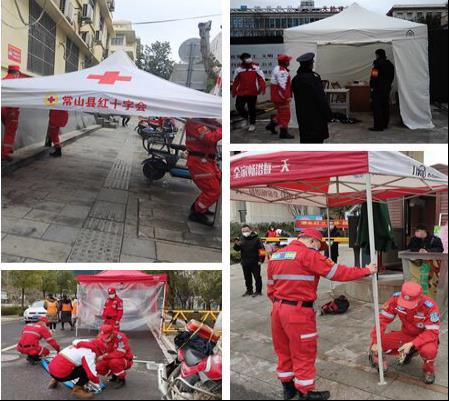 常山县红十字应急救援队于2017年7月19日正式成立,发展至今已有正式队员37人,预备队员10人,设有山救组、城救组、水救组、医疗组等七个小组,2019年共计出勤120次,其中城市搜救类60次、水域救援类4次、活动保障类12次、出席会议类16次、训练演练类20次、志愿者服务类8次。