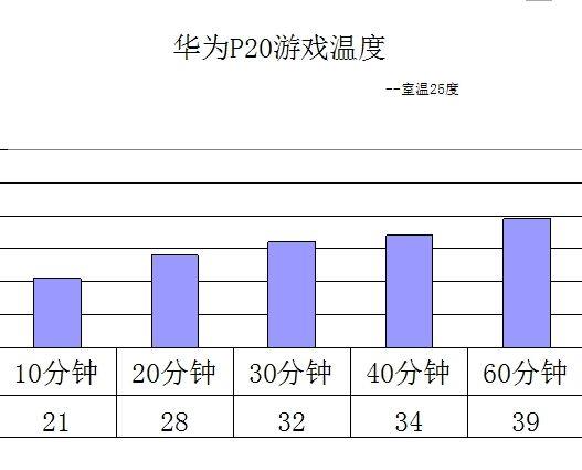 在游戏过程中手机的温度也是至关重要。温度太高的话会大大的影响到我们的游戏体验。下图为一个小时游戏时间的温度树状图。可以看到一个小时后温度也只达到了39度。p20 pro的表现还是很不错的。