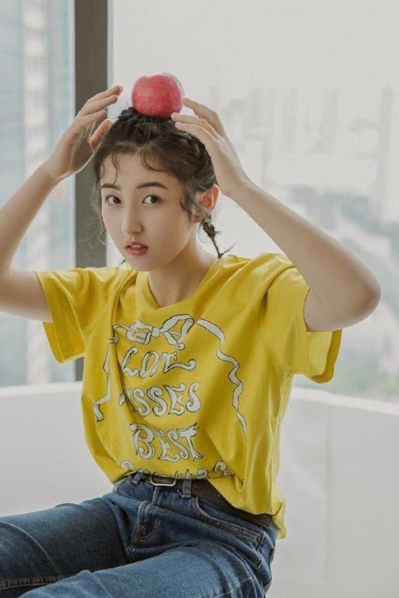 张子枫就是毛绒发际线的典型人物,由于毛绒绒的额前发,让她看起来脸型小巧,额头饱满。加上张子枫的五官极具清纯气息,让人越看愈发觉得可爱。毛绒发际线也让她更显青春,有一种校园乖巧女同学的视感。