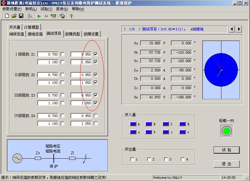 测试项目分别选择一二三段阻抗0.95和1.05倍试验。