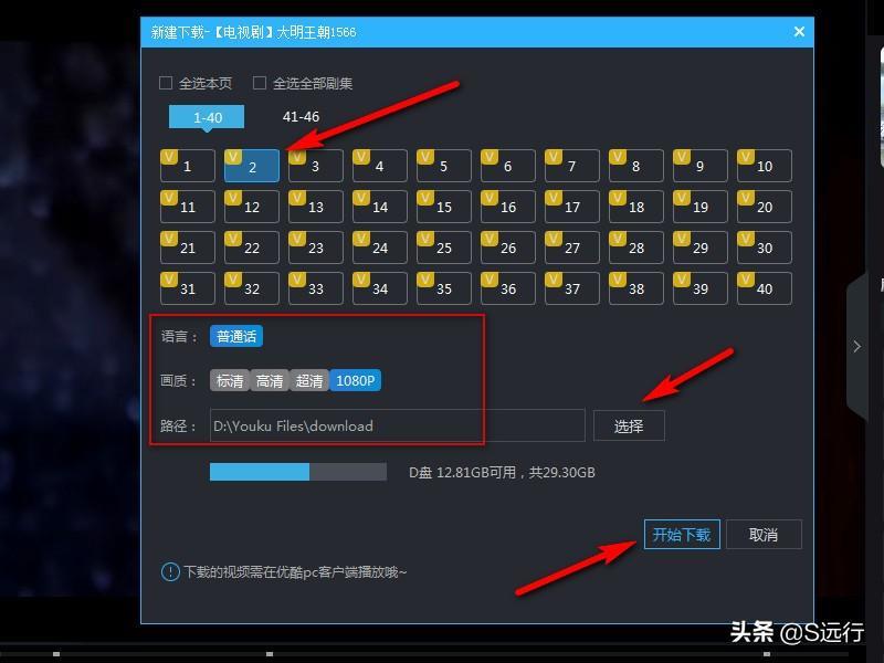 选择需要下载的剧集,设置下载画质及路径等,单击“开始下载”。