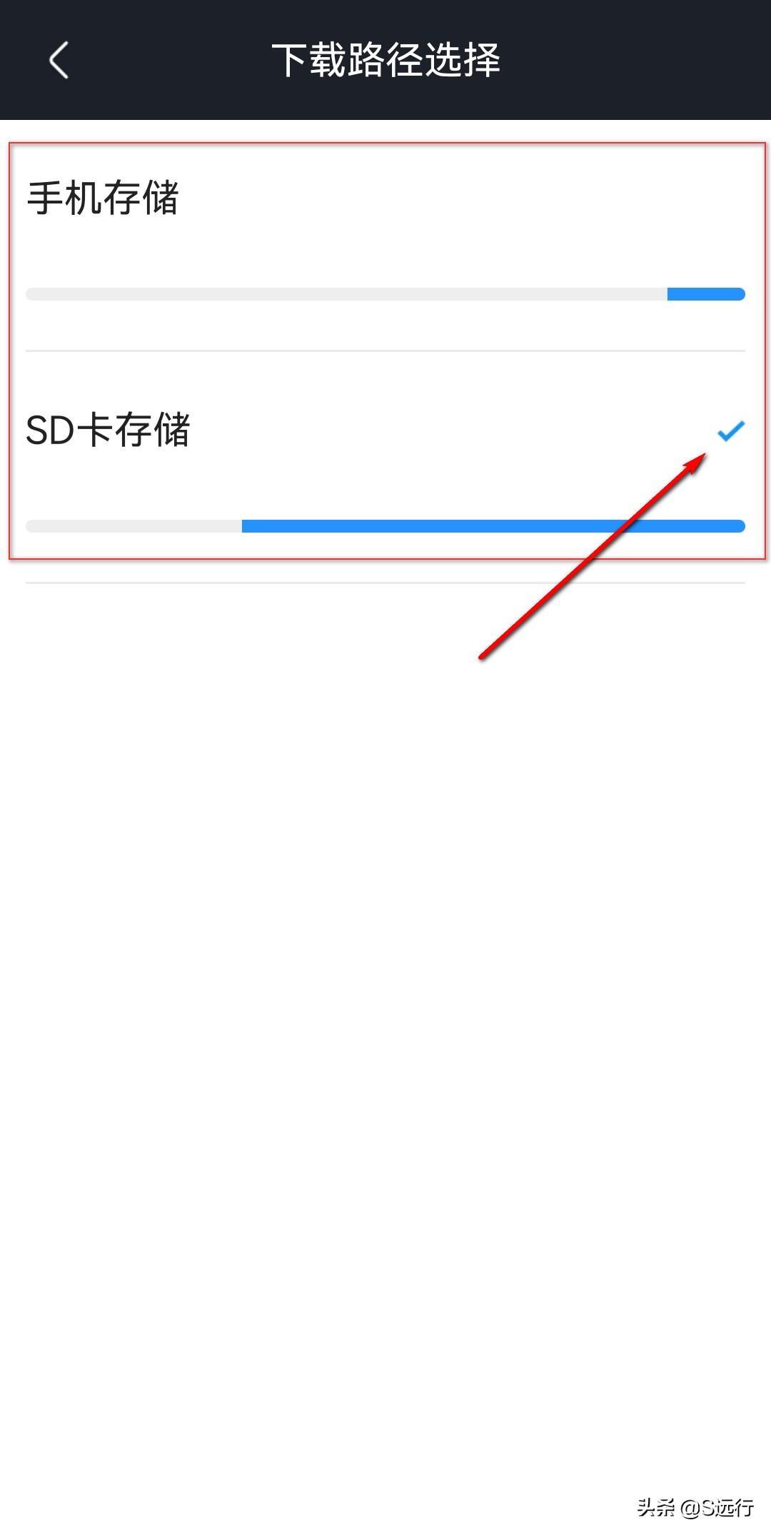 勾选“手机存储”或“SD卡存储”即可。