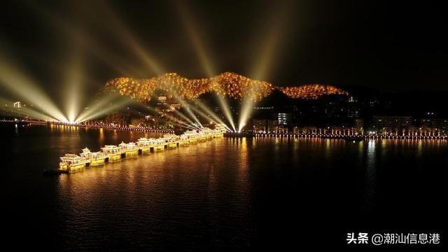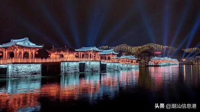 而广济桥最值得一看的就是每天晚上的两场灯光秀,是今年才打造出来的一个公益性表演节目,绝对非常值得一看的夜景大片!看过的每个人相信都会为之震撼,为之惊叹!小编自己已经看过几回了,每次看都觉得很壮观,从整座广济桥到对岸的整座山,全部布满了灯光,随着音乐不断跳动,相互交错,时而欢快时而柔美,再加上波光粼粼的江面,整个场景真的很惊艳!这个灯光秀从首秀至今的口碑一直很好,很多潮州市周边城市的比如揭阳等地区的人民都特地跑来潮州现场目睹这场灯光秀。所以如果你来潮州,什么都可以错过,但一定不能错过广济桥灯光秀!