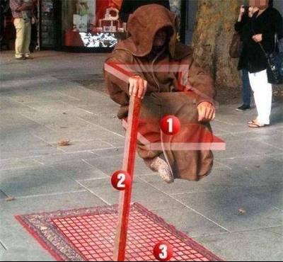 在印度街头,到处都可以看到悬浮术表演者。但他们都是假的,看着毫无破绽,其实都是障眼法。