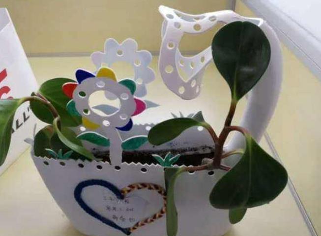 如果想要做成立体的,可以买个热熔胶枪,把剪下来的塑料做成花瓣的样子,然后再一层层的粘在上面,最后把准备好的装饰品粘上,这样就可能做出更漂亮、更立体的花盆了。看到这些多种多样的立体花盆,犹如一个艺术品摆在那里,要比普通的花盆漂亮百倍。