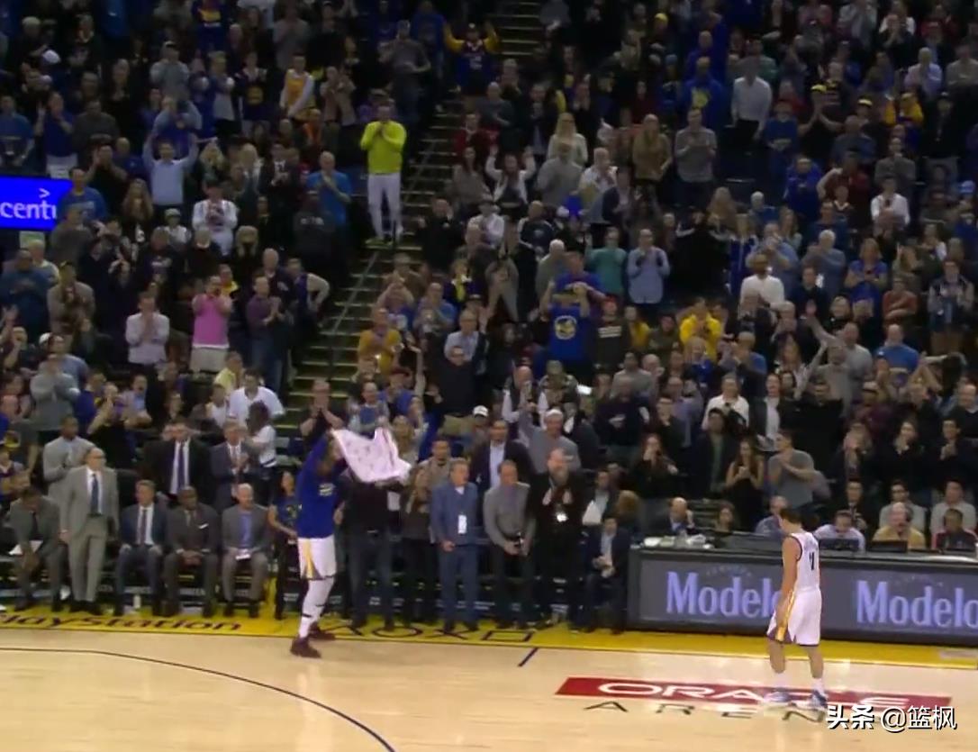 而到了第三节表演似乎还没有结束,汤普森再次单节砍下20分,记得当第三节还剩1分多钟汤普森被换下的时候,他已经砍下了60分,当时数据统计上汤普森的出场时间定格在29分钟,第四节科尔没有再让他上场,在29分钟里汤普森33投21中,其中三分球14投8中,砍下60分,直到现在很多人都没有忘记汤普森被换下场时杜兰特的举动?即便得分如砍瓜切菜般的杜兰特都没有亲眼见过如此爆炸性的得分表演,他的表情一脸不可思议,在汤普森下场的时候杜兰特直接挥舞着毛巾在场边迎接,看上去十分的激动。