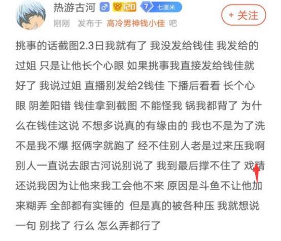在神超违约跳槽去了虎牙之后,明眼人都知道热游公会已经要整体跑路虎牙直播。古河作为热游公会的老板,这时候在钱小佳房间爆料的动机可以说是非常有疑。