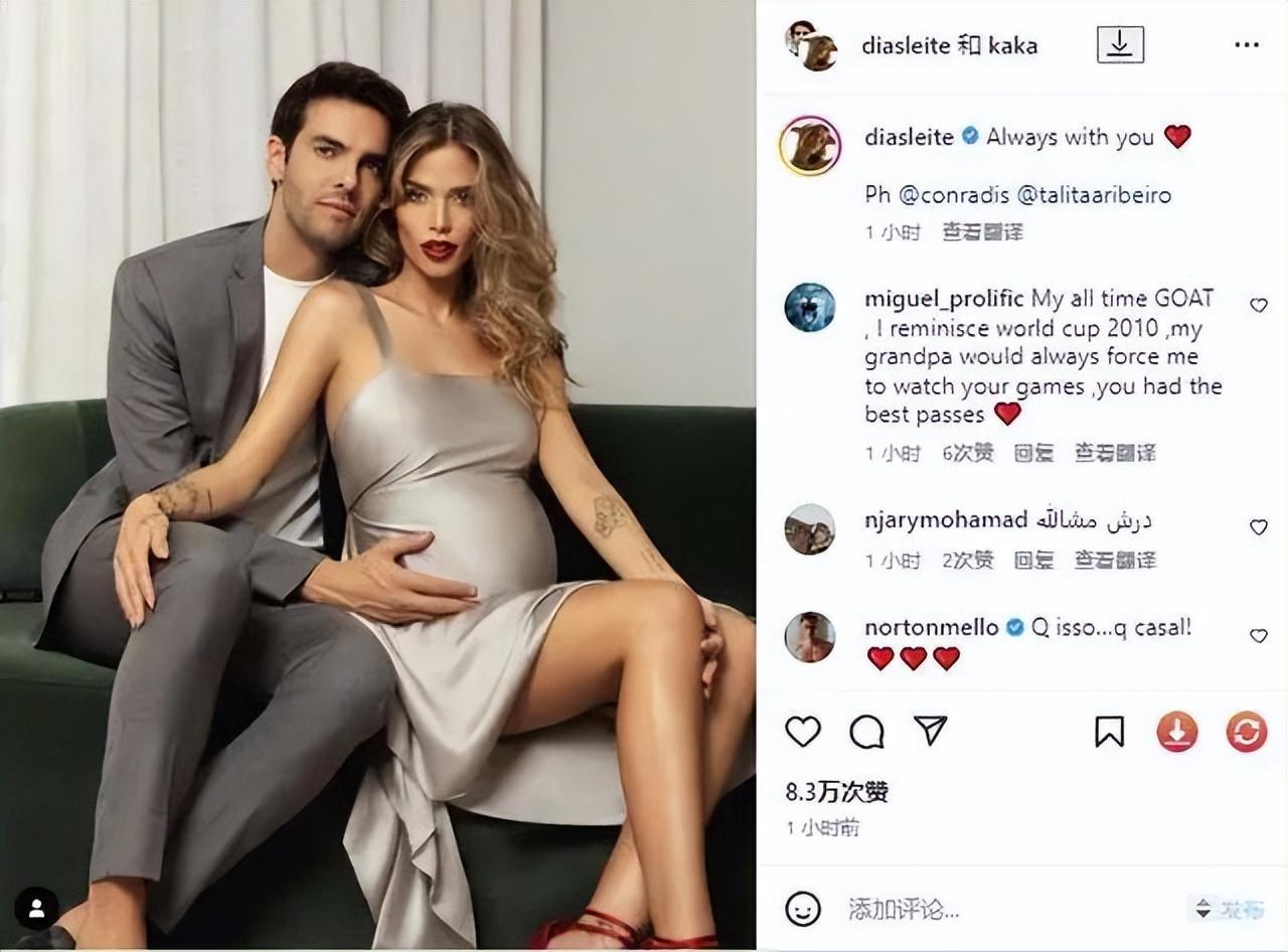 照片中,卡罗丽娜孕肚大如箩,预示着小生命即将到来。卡卡坐在卡罗丽娜身后,温柔的抱着妻子,右手放在卡罗丽娜的肚子上,感受小生命的存在。41岁的卡卡还是那么帅气,如同一位翩翩公子。28岁的卡罗丽娜也很有韵味,身材傲人。郎才女貌,两人很是般配。