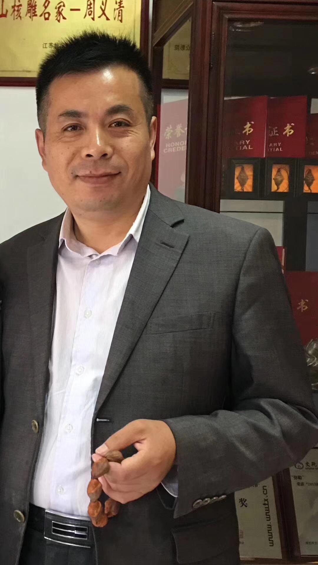 周义清,他出生于1968年4月5日,是江苏省苏州市吴中区光福镇舟山村人,他从1985年开始学习橄榄核雕刻,他雕刻出来的作品各个形象生动,神态神韵都是不错的,表现的活灵活现的。