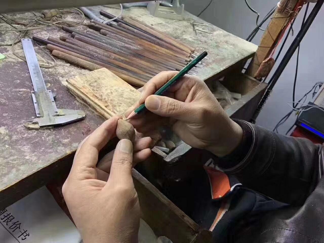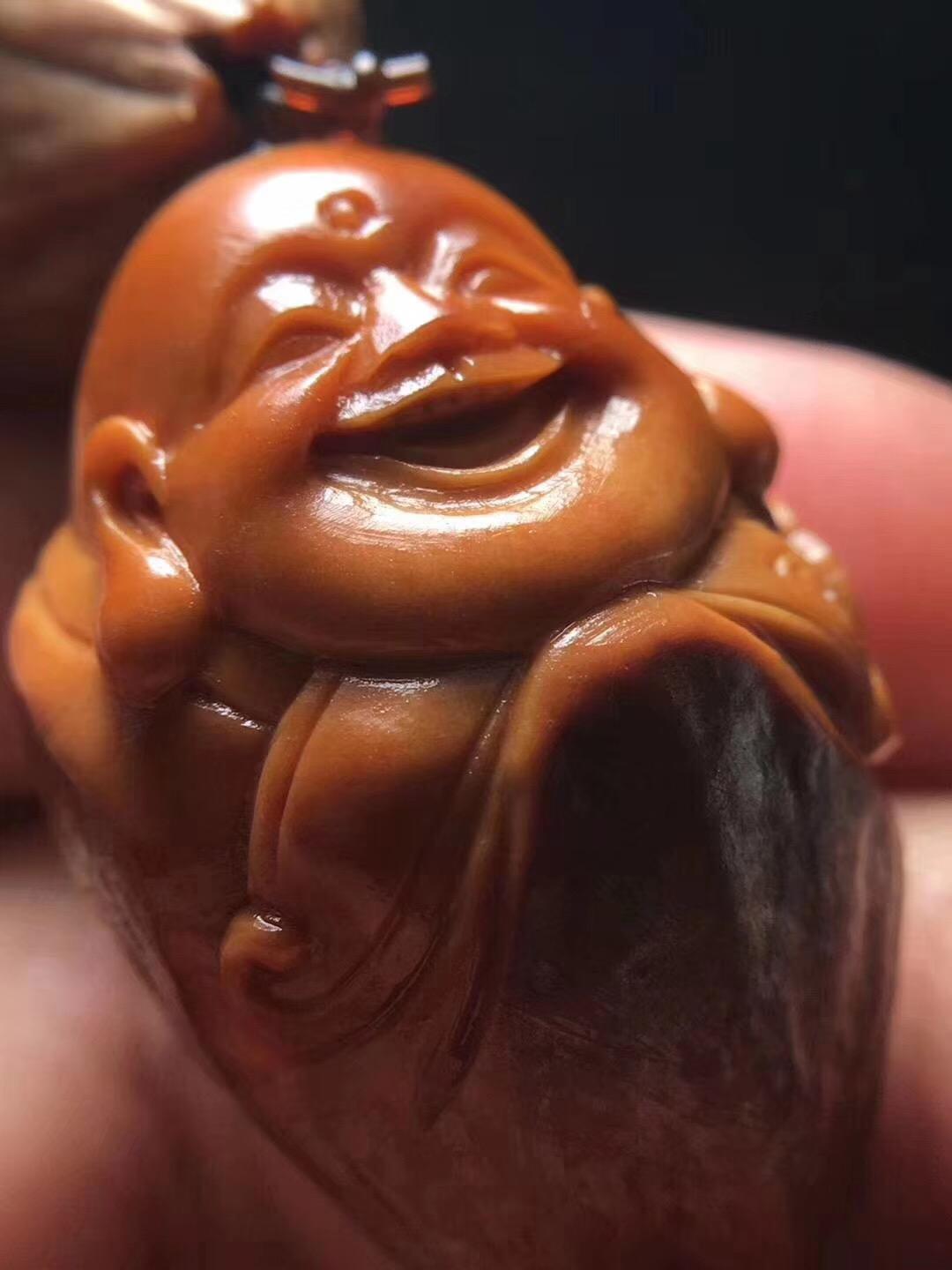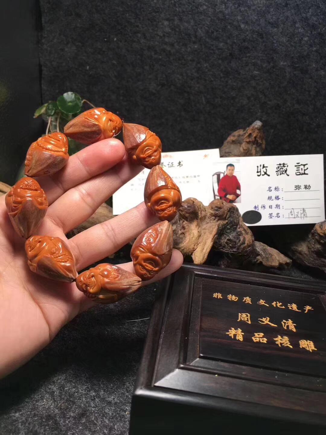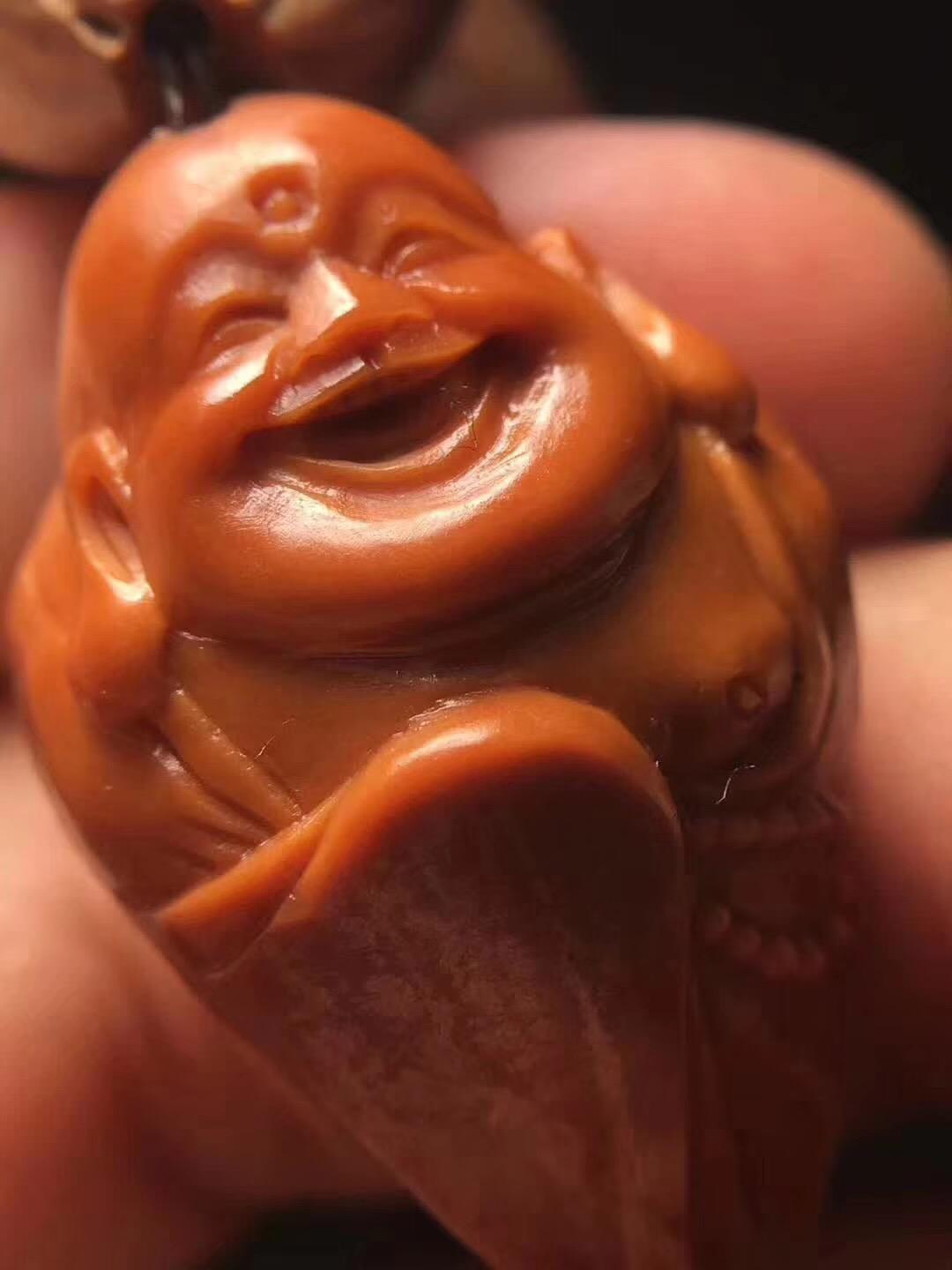 周义清雕刻弥勒都是他自己包的紫皮核树,作品到最后打孔,用的是传统的工具和方法,优点是圆滑,他喜欢雕刻弥勒,接下来给大家介绍一下