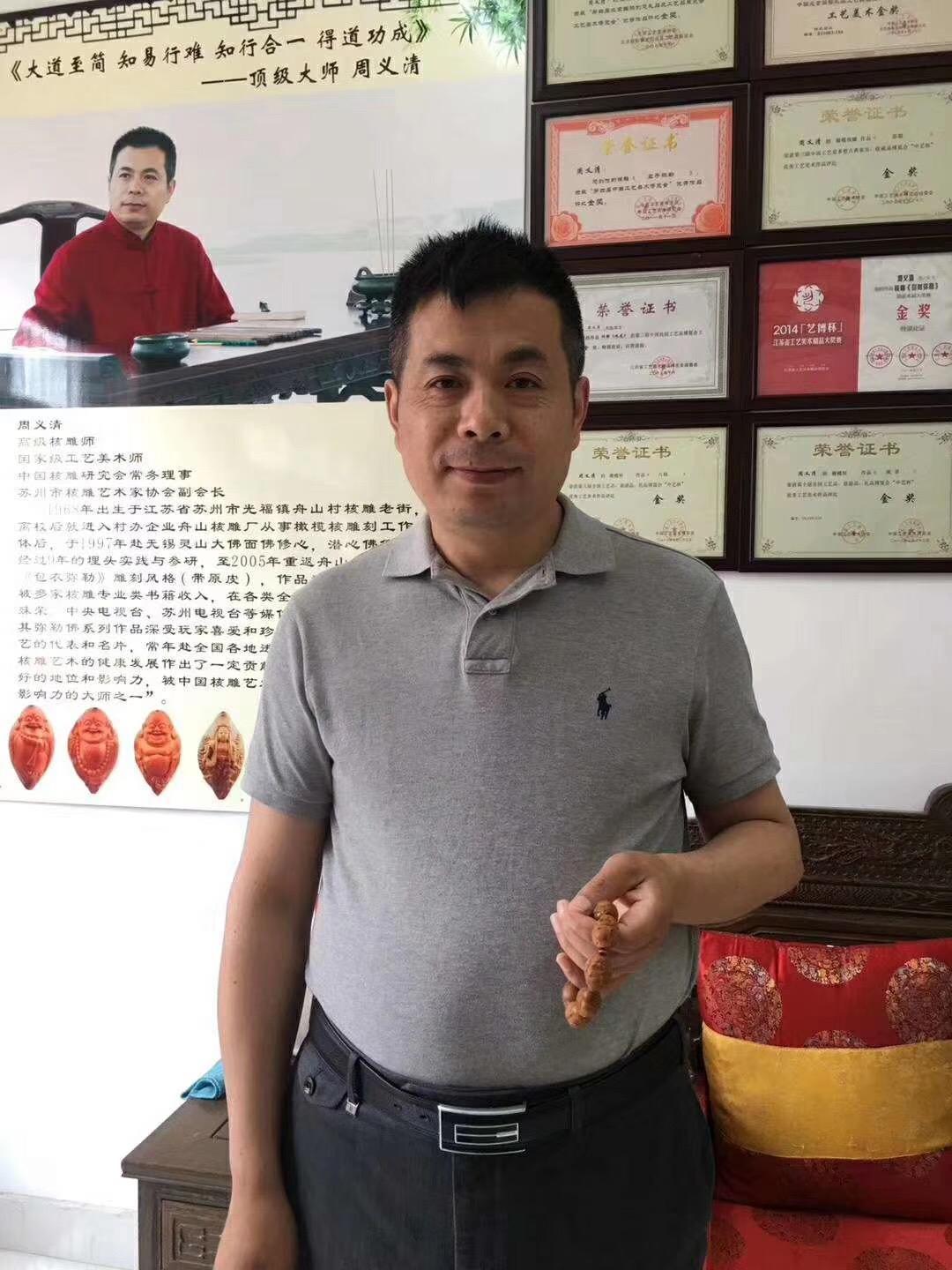 橄榄核雕刻界有很多名师,比如周雪官啦、胡小兰啦、顾永芳啦、周义清啦等,那今天的主角就是周义清了,接下来就带领大家来了解一下这位雕刻大师。