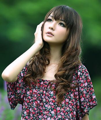 无刘海的螺旋桨烫发也是娃娃脸女生的心头好,额前的刘海梳起固定,更加的清爽自然,而轻盈的卷发发丝营造出小脸来,美眉一双大大的眼睛,绝对是电力十足呢。