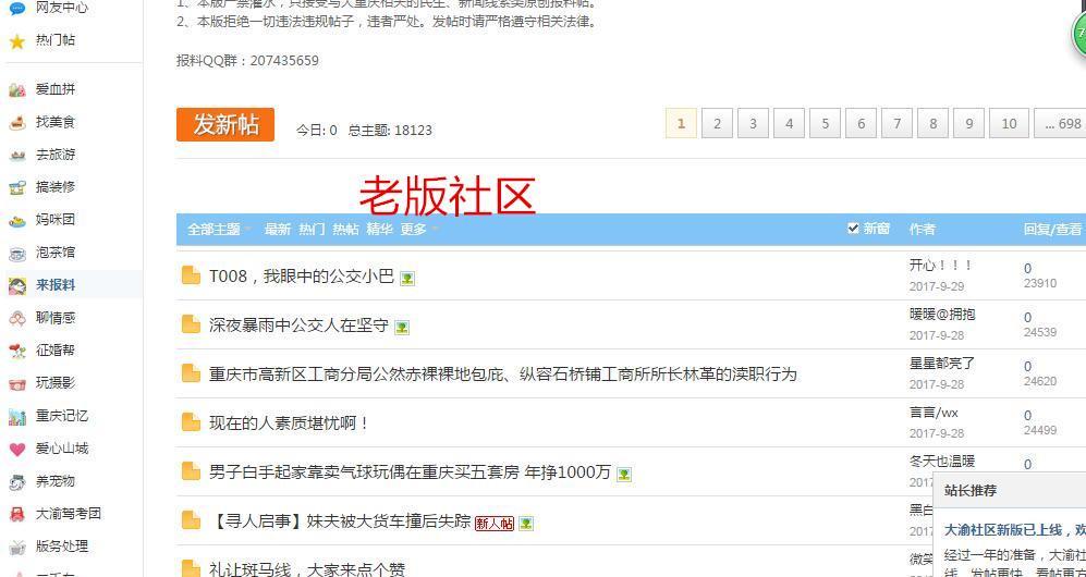 是不是改版后,平台的管理者忽略了呢?重庆大渝网的管理者们,你们知道爆料平台改没了吗?这是一个直接反应老百姓心声,直面揭露某些违法犯罪进行举报的平台呀?如果是忽略了疏忽大意了,希望你们赶紧恢复吧!老百姓需要这个平台,而如何让这个平台健康,有效的发展,平台的管理者就要多费心了,但无论如何不是用关闭来搪塞咱们网民哦!