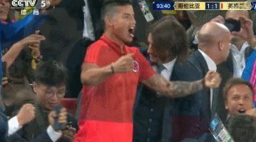 J罗因为受伤无法出战,他只能在看台上观战,第53分钟,凯恩制造点球并亲自将点球打进,在取得进球后,镜头对准了场边的J罗,哥伦比亚巨星本场因为受伤无法出阵,在看台无奈地底下了头。
