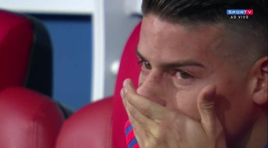 场边目睹球队被淘汰!J罗心碎瘫在替补席流泪,哭得双眼通红