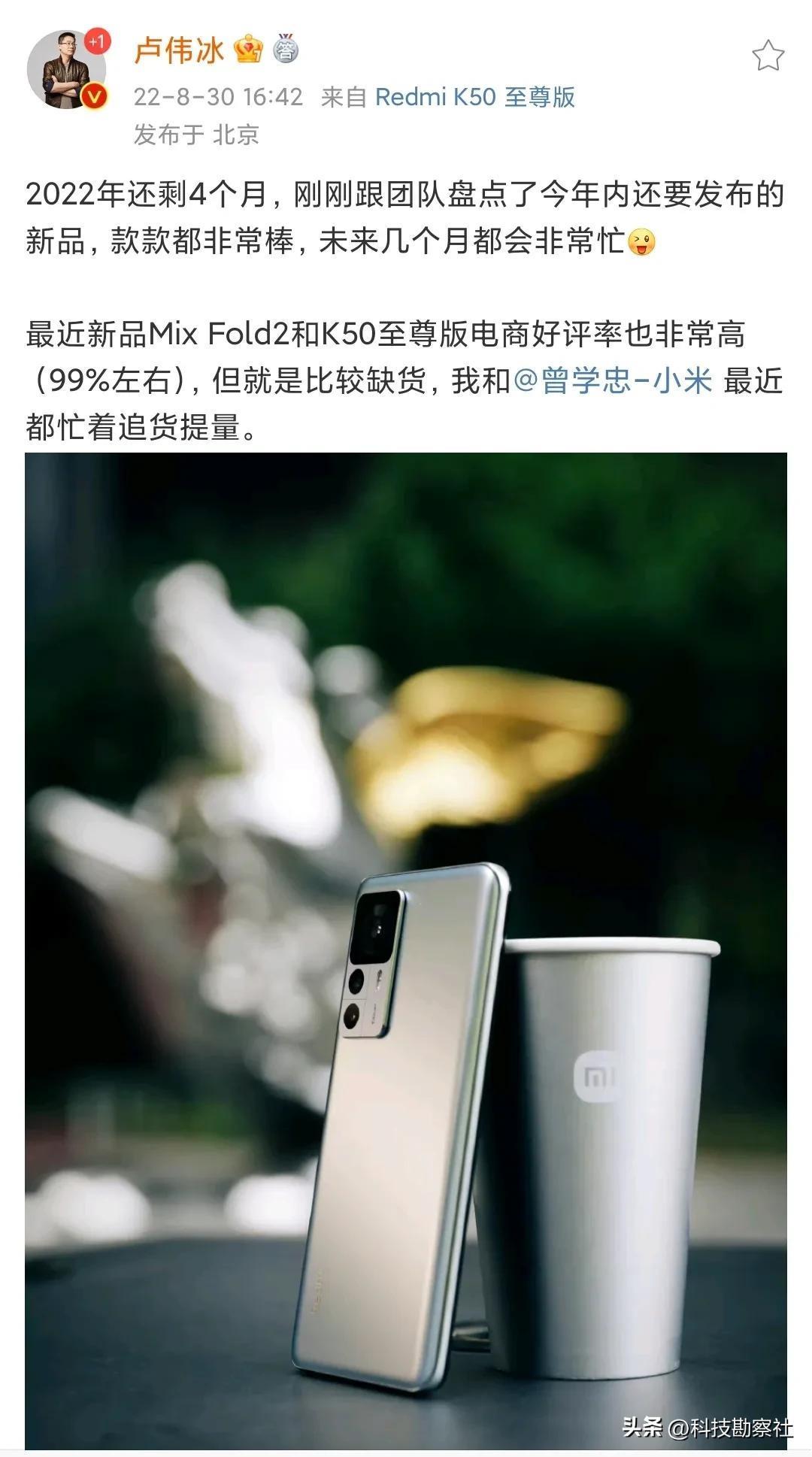 面对外界的猜疑,卢伟冰并未正面回应。8月30日,卢伟冰终于发了一条有力的微博粉碎了外界对其离职的谣言。微博内容:“2022年还剩4个月,刚刚跟团队盘点了今年内还要发布的新品,款款都非常棒,未来几个月都会非常忙”。简短的一段话,彻底打破了网友的猜疑以及机圈内的谣言。看到卢总的回应,小编更加坚信“美好的事情即将发生”,期待卢总在接下来能继续给米粉带来越来越多感动人心、价格厚道的好产品。
