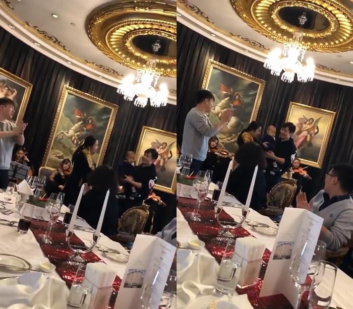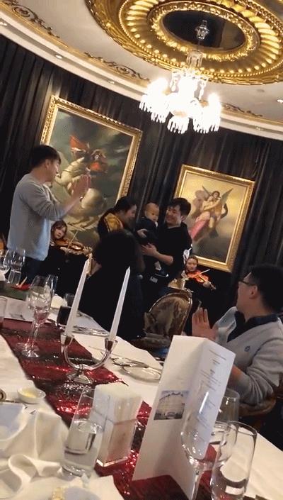 也不知道哪里请的乐队,小提琴拉起来,整个场面也就只比李湘家王诗龄过生日的小那么一点点。如此重视音乐的熏陶,恐怕纪敏佳和老公也是有意要把儿子培养成音乐家。