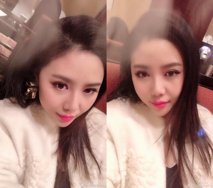 照片中的纪敏佳的确也是一反常态,白色的毛外套,耳环亮眼,睫毛膏不知道刷了多少,很网红,也很贵妇。