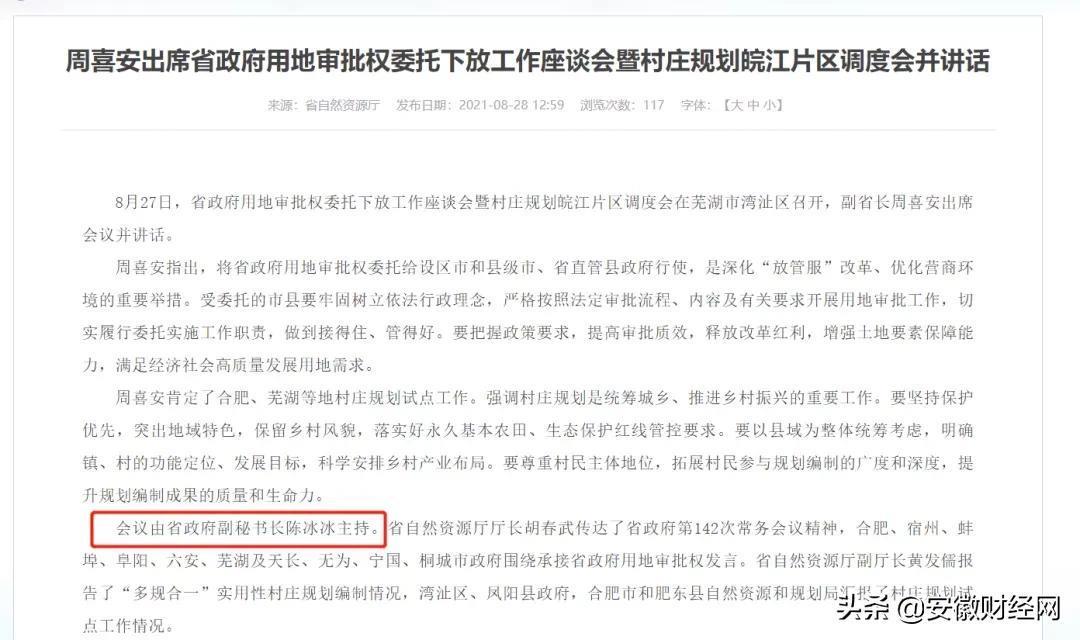 上述消息显示:陈冰冰已任安徽省政府秘书长,此前他曾任安庆市市长。