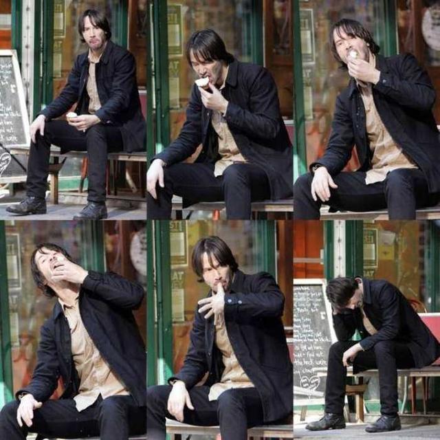 其实,每个人都是这样,都有自己最随意的一面,随性洒脱,做自己如如不动。他赚着百万美金,他却住在普通的套房里;他将拍摄《黑客帝国》收入的70%捐献给了治疗白血病的医院,他的身边没有保镖,身上没有大牌。47岁生日的时候,他衣衫褴褛地坐在马路边吃自己的蛋糕,蛋糕上还插着一根生日蜡烛,有粉丝走过来聊天,他便把蛋糕和他们同分共享。
