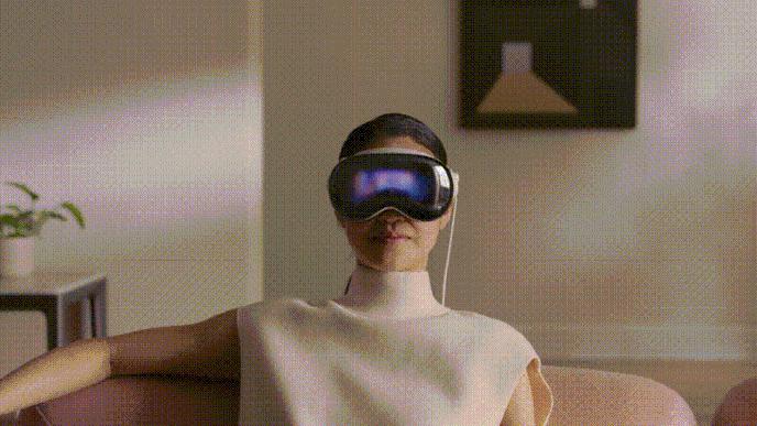 Vision Pro 所演示的 Eyesight 功能,覆盖着玻璃罩的曲面 OLED 多角度格栅式显示,基于深度学习的脸部建模和数字头像(表情)传递,外部动态的智能化提醒和切换,让佩戴头显的用户自然且巧妙地感知外界信息。相比之下,以往佩戴 VR 头显的用户和其他人几乎无法正常 " 交流 ",人与人之间的视觉割裂,陷入信息孤岛,环境安全和友好几乎是无法解决的问题。