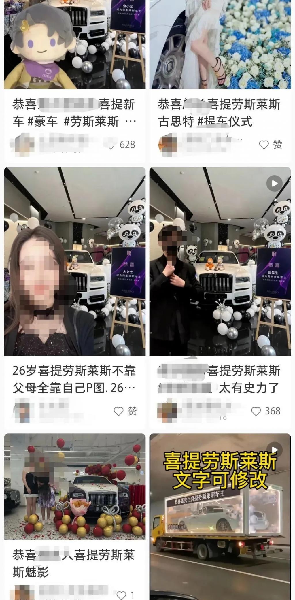 于是,网友们发现了一些有意思的现象,不管是不是真网红,都把 " 喜提劳斯莱斯 " 当作日常生活的标配,发布到社交平台,营造出了互联网上 " 人均劳斯莱斯 " 的错觉。