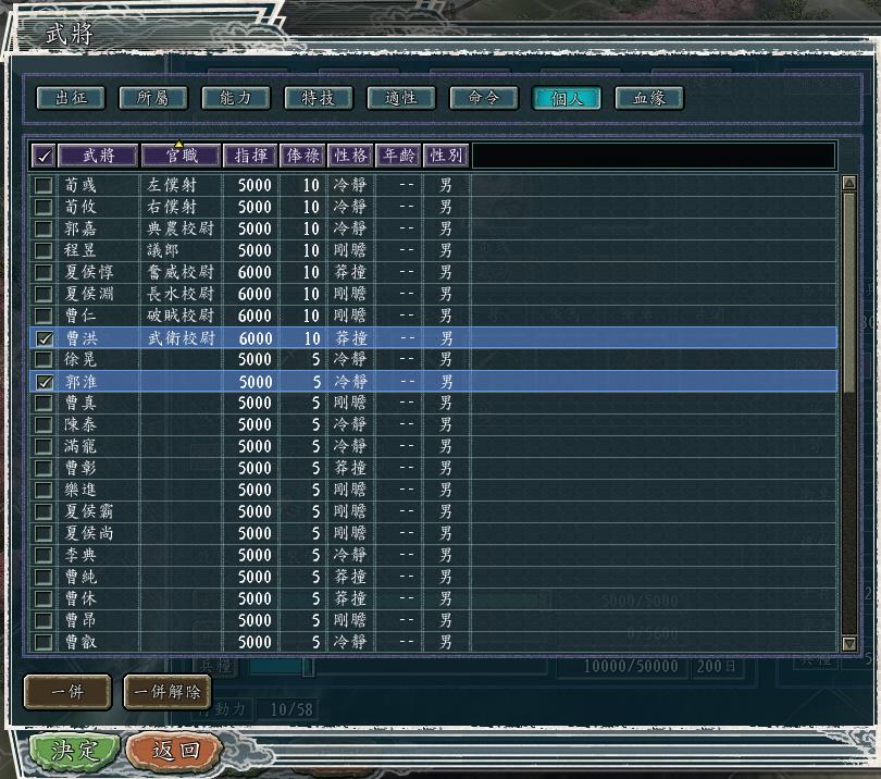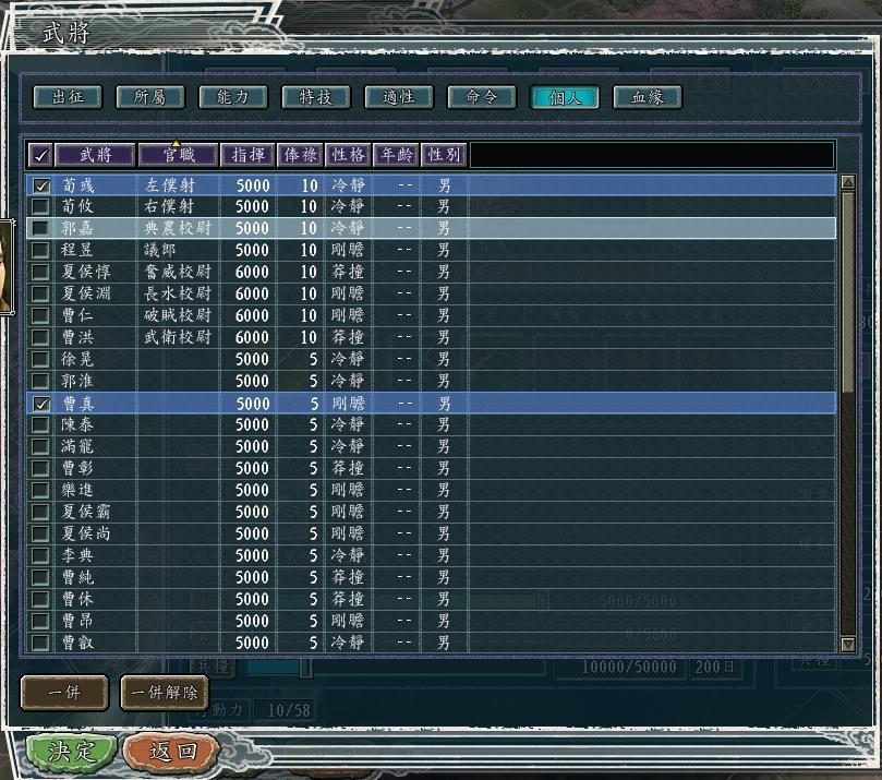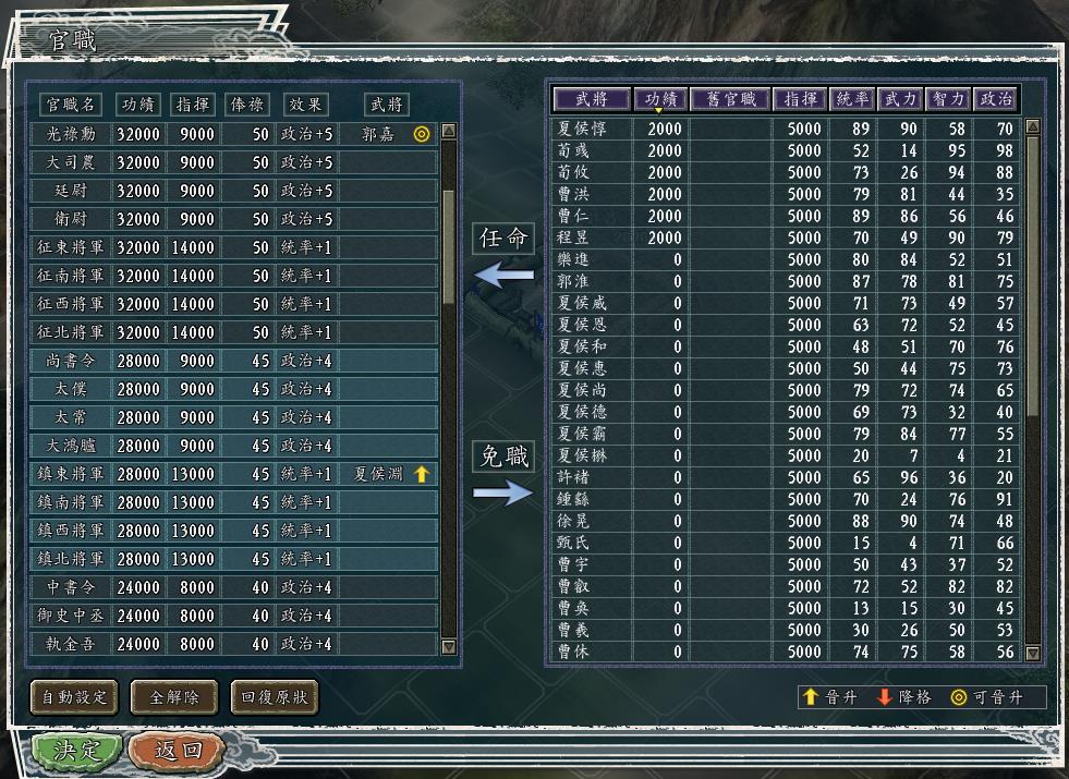 我把所有人的官职都去掉,然后用统率值排序。