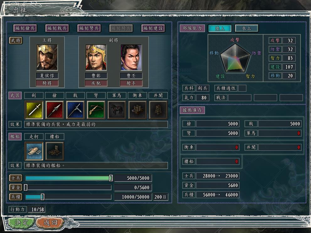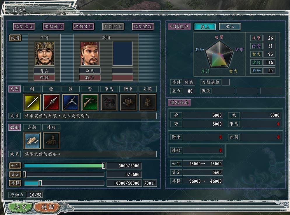 再比如,我选择荀彧和曹真一同带队出征。荀彧是有官职的,曹真现在没有。但是,两人的带兵数量都是一样的5000。