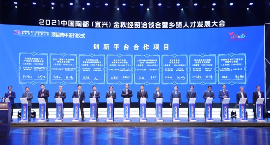 坚持实施生态优先战略,坚持发展高端新兴产业,江苏省宜兴市创新资源不断集聚、高端项目纷至沓来,走上绿色化高质量发展之路。10月18日,在2021中国陶都(宜兴)金秋经贸洽谈会暨乡贤人才发展大会上,该市集中开工40个项目,总投资超300亿元,签约74个项目,总投资超过820亿元,涉及集成电路通信电子、智能制造、生物医药基地、现代服务业等战略性高新产业领域。