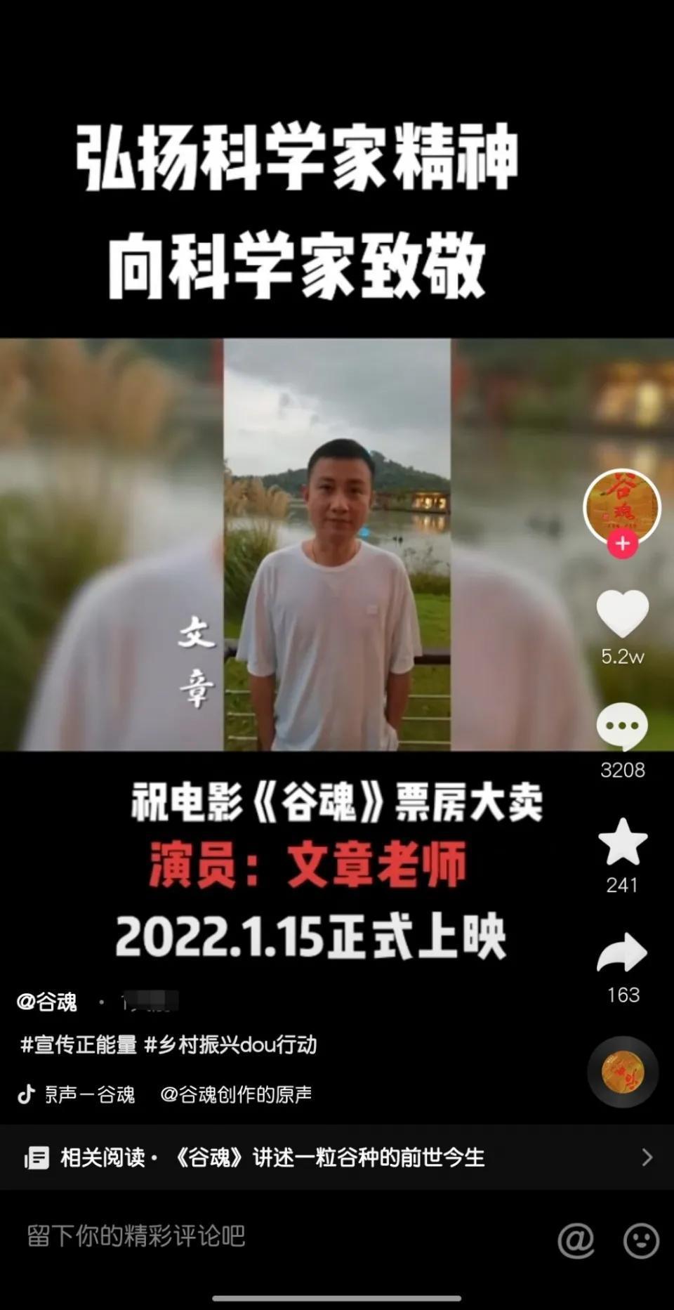 近日,电影《谷魂》晒出宣传片,出现文章的身影。