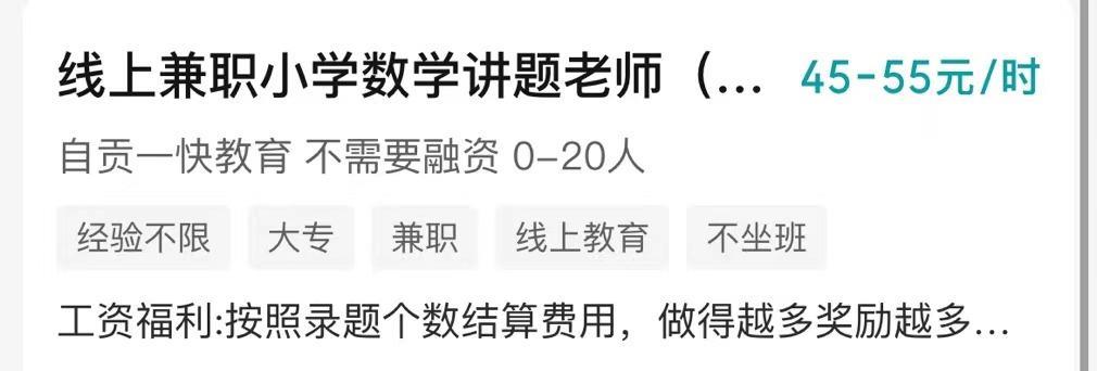 录制讲题视频:这两年各种网课、网上搜题的兴起,遇到不对的题目拍照搜一搜就会跳出来一个视频讲解。对的你是不是也以为这些都是搜题软件内部的人来做的,其实不是的,为了缩减成本大多数都会把这些工作下放提供给想做的人,而这个工作呢就是根据领到的题目录制一个讲解视频,只要审核通过就会有报酬,一题8--12元不等,比如某搜题或者某帮都有这种工作的,大家想做的可以直接去某直聘搜兼职录题就可以。当然报酬肯定没有他写的那么多,因为视频审核不通过的话是需要重新录制的,大家熟练之后25--30/小时还是可以做到的。缺点就是现在做的人太多了不一定随时都有题。