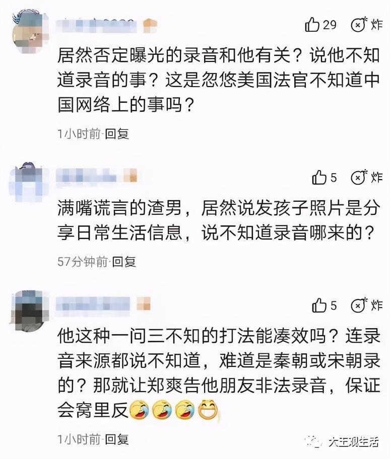之后,郑爽律师又提到了,张恒将孩子信息发布到微博上,以及将郑爽父母的录音公布在网络上等,这些都阻碍了郑爽的事业。张恒表示,他不同意是自己的原因阻碍了郑爽的事业,不清楚录音的来源,也不清楚是谁放到网上的,并且还多次强调1月18日发的微博只是想单纯地分享自己和孩子的日常,并不知道会影响到郑爽。